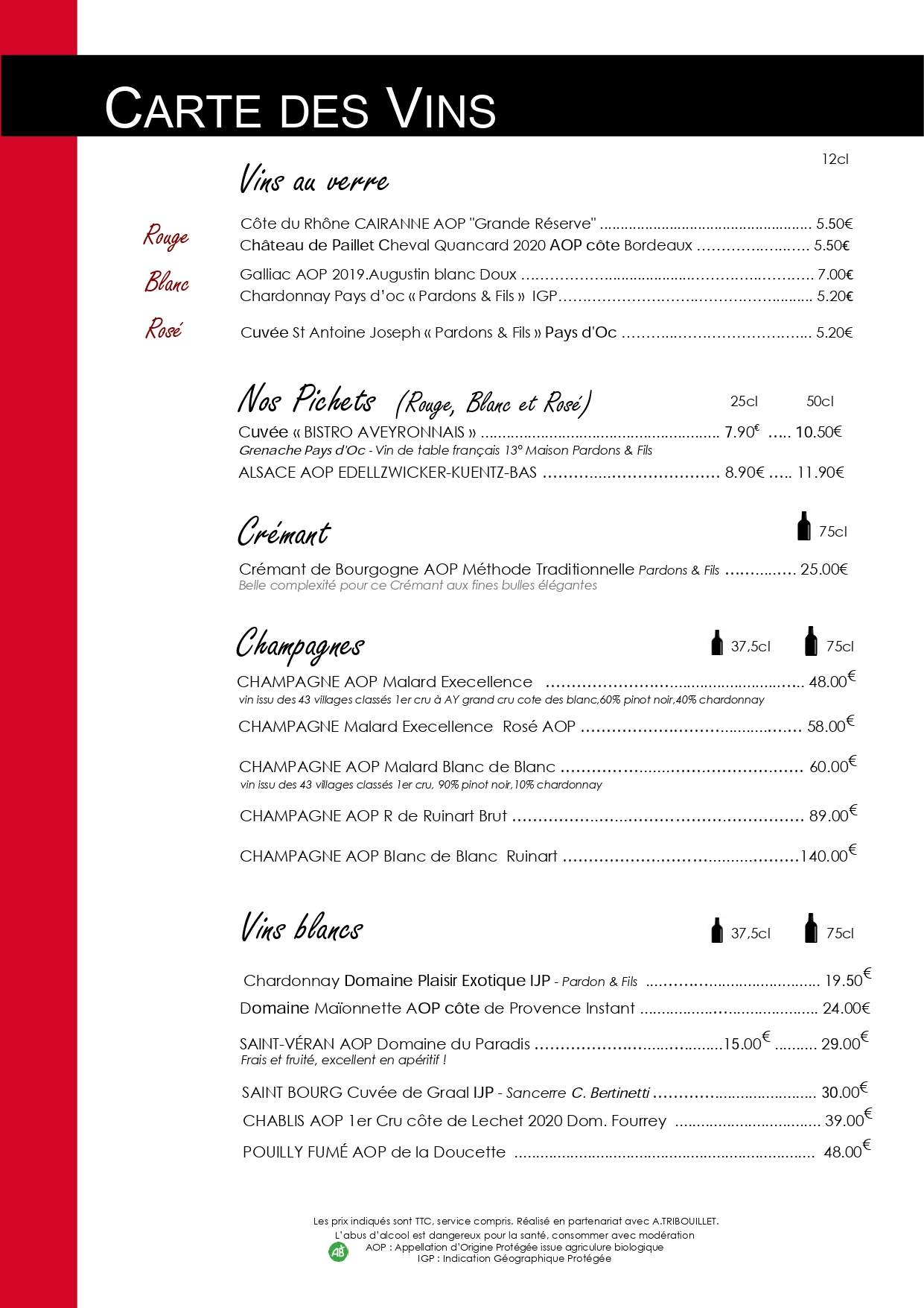| Cuvée « BISTRO AVEYRONNAIS » Grenache Pays d'Oc - Vin de table français 13° Maison Pardons & Fils |