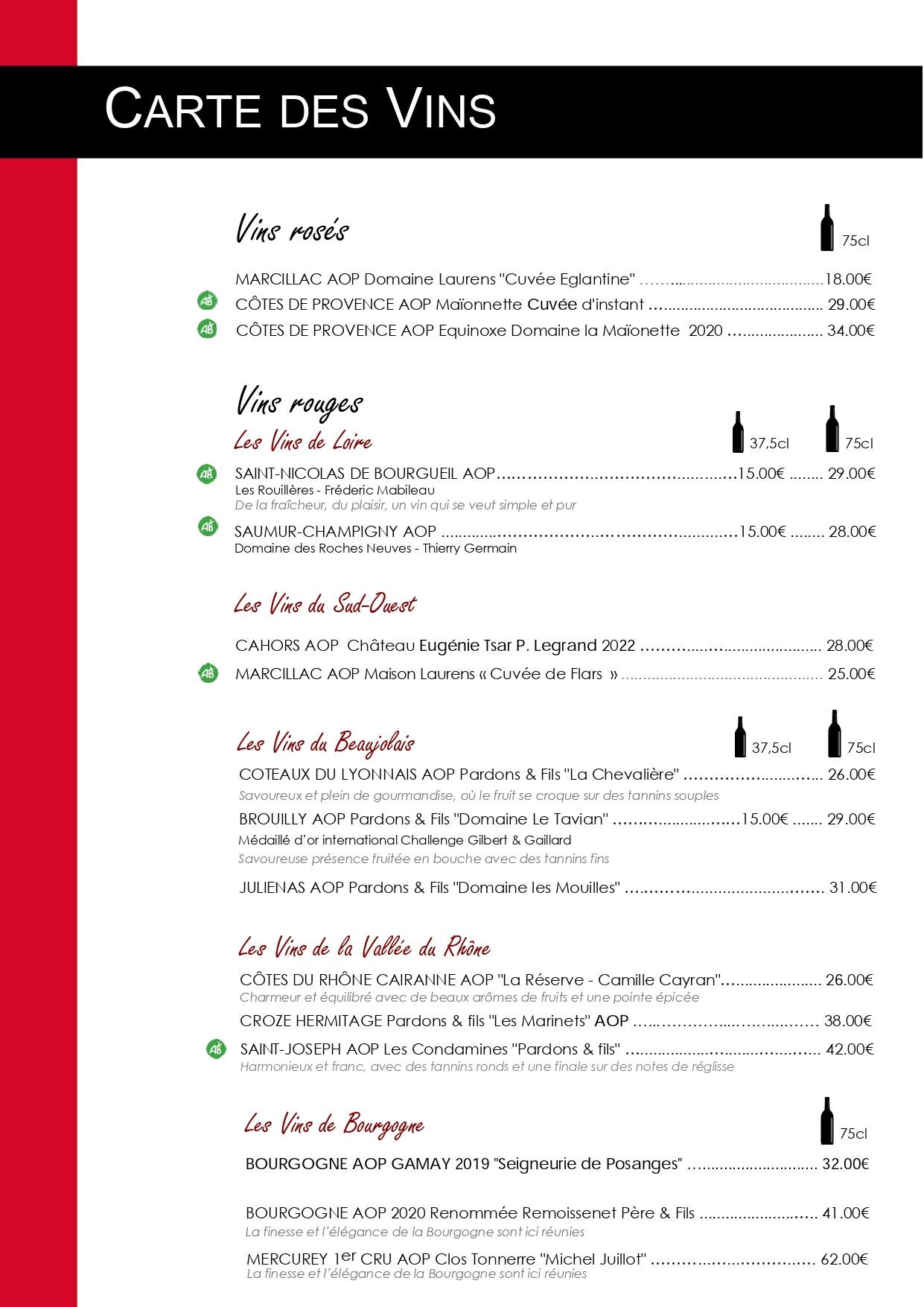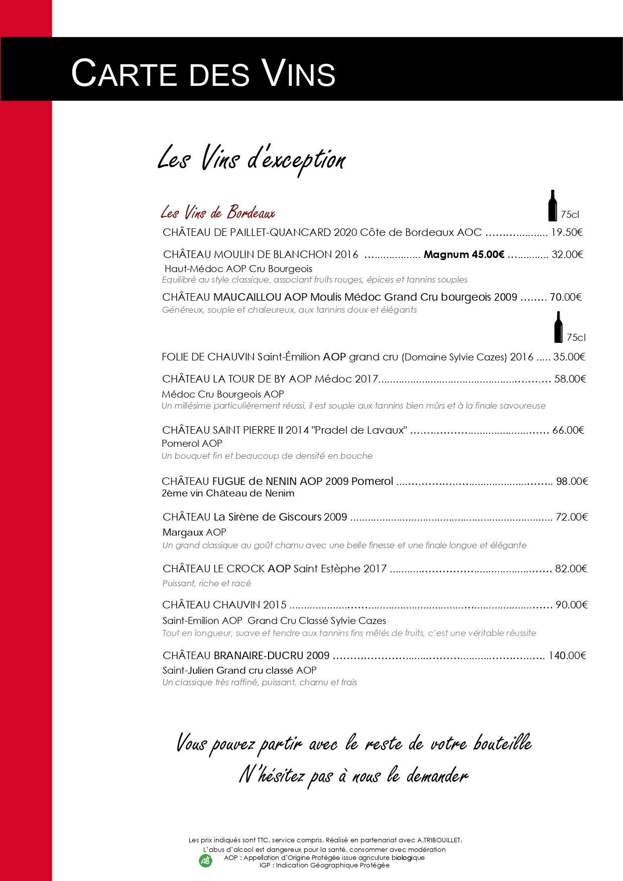 | Vous pouvez partir avec le reste de votre bouteille N’hésitez pas à nous le demander |